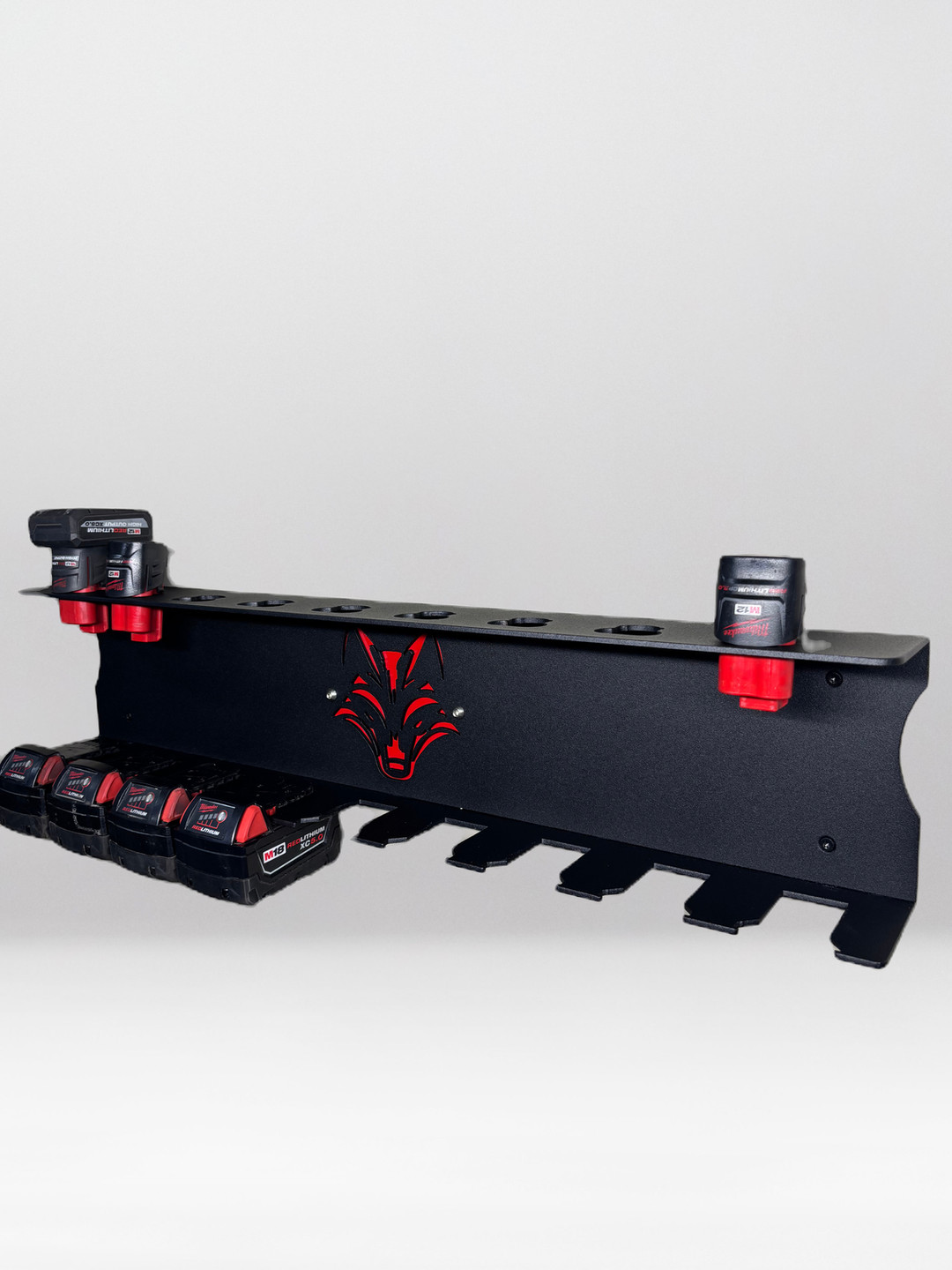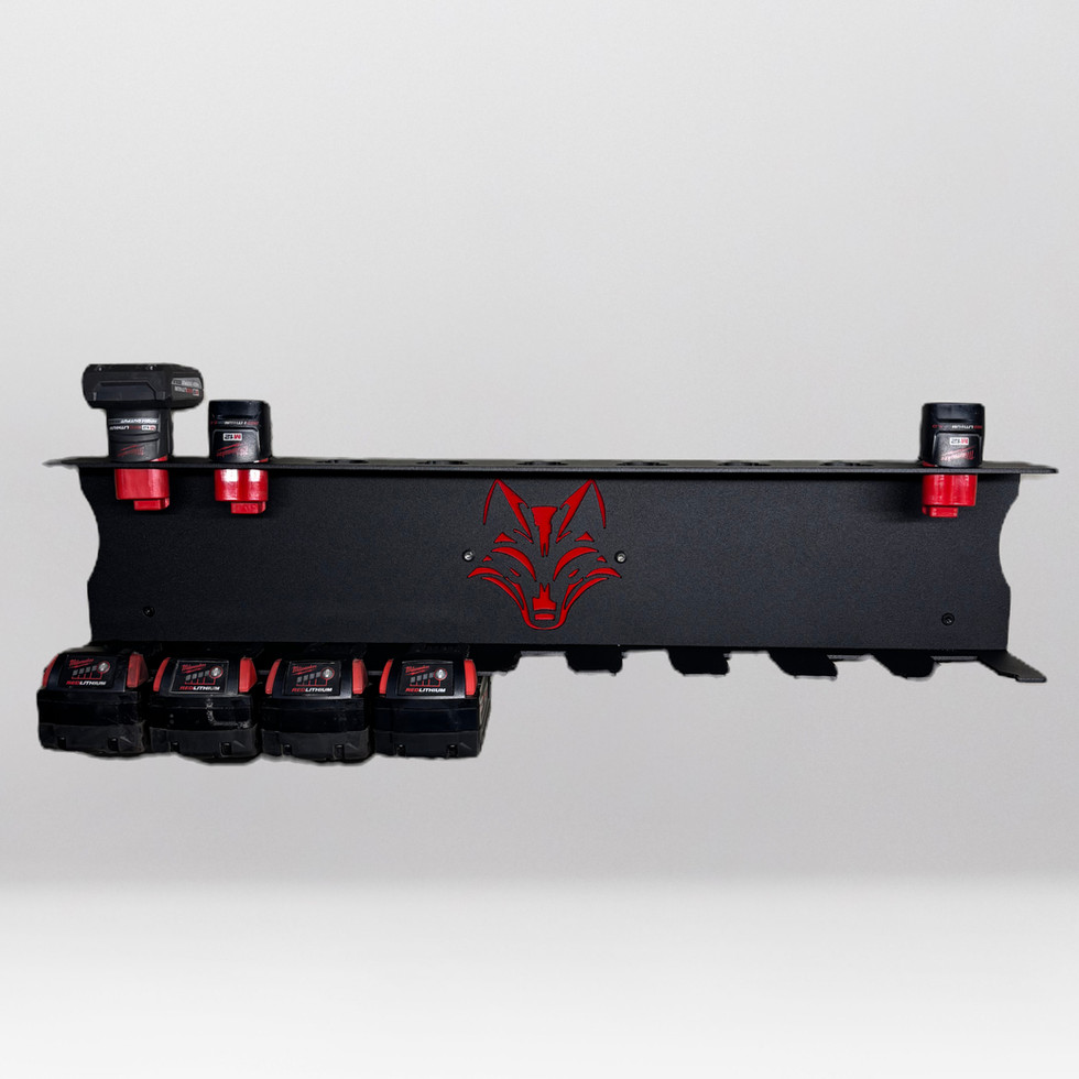 The Iron Fox Milwaukee Battery Holder is the ideal solution to organize and secure your Milwaukee batteries with its innovative clip-in design. Specifically crafted to accommodate 9 M18 and 9 M12 Milwaukee batteries, this sleek holder ensures your workspace stays neat and efficient. Made from heavy-duty 10 gauge mild steel, CNC cut, and finished in a rugged textured black powder coat, it reflects the excellence and legacy Iron Fox Fabrication is known for. Measuring 30" long, 3.5" deep, and 6" tall, it offers robust and reliable storage. Trust Iron Fox Fabrication for quality craftsmanship that stands the test of time. *Mounting harware included*